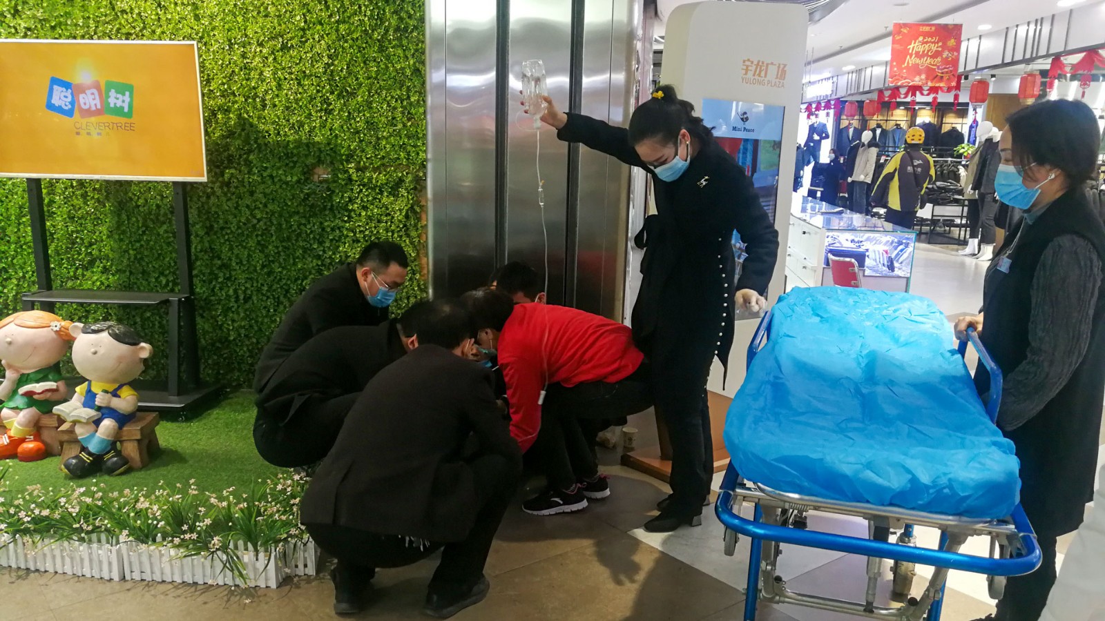 1月15日中午,一對(duì)年齡約60多歲的老夫婦在宇龍廣場用餐后,到達(dá)三樓中廳電梯口時(shí),老太太突發(fā)不適暈倒在地,面色蠟黃,其老伴手足無措,急的滿頭大汗。附近專柜導(dǎo)購發(fā)現(xiàn)后及時(shí)通知當(dāng)班主管谷孟文和當(dāng)日總值班楚艷會(huì),同時(shí)安撫好顧客。二人急速趕往現(xiàn)場,谷孟文及時(shí)撥打120,并不停詢問顧客的身體狀況,楚艷會(huì)通知相關(guān)部門人員現(xiàn)場支援。初步了解情況后為:該老人因心臟問題在人民醫(yī)院住院,未經(jīng)醫(yī)生允許私自外出導(dǎo)致本次突發(fā)事件。